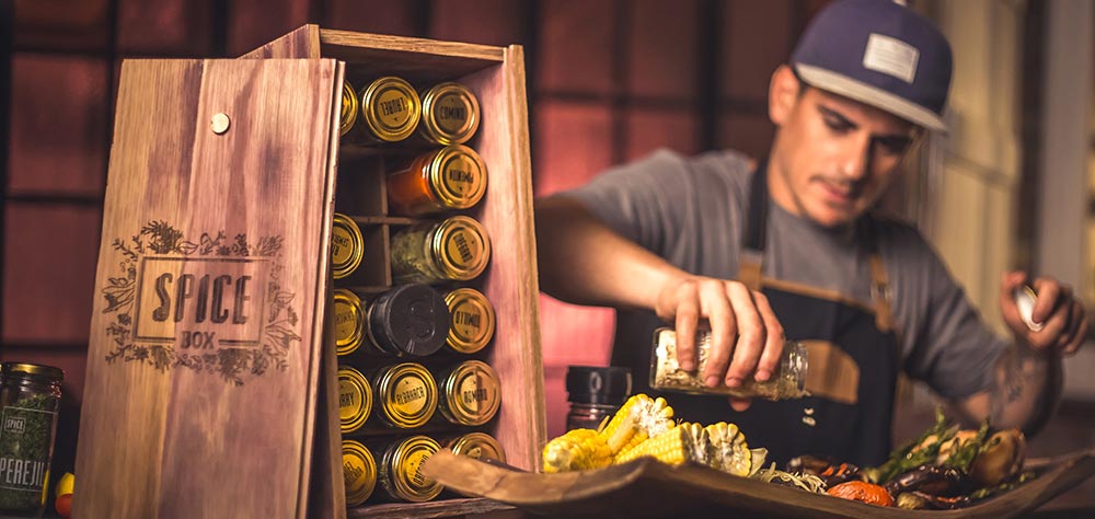 Agregá sabor y aroma a tus comidas con nuestra caja de especias y molinillos para el hogar. Dale a tu cocina un toque gourmet con SPICE BOX HOME.